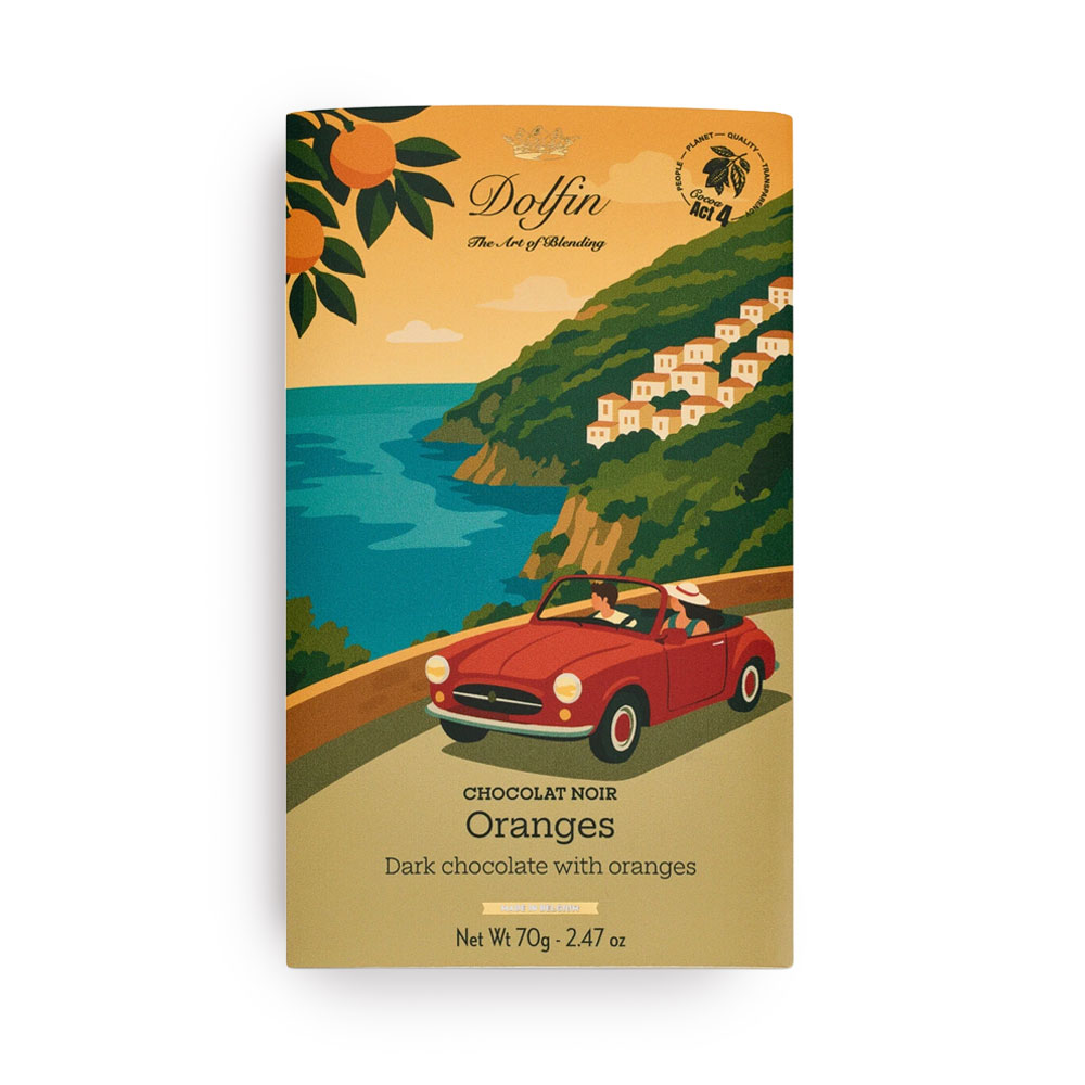 Zutaten: Kakaomasse, Zucker, kandierte Orange 3,6% (Orange, Zucker, Glukosesirup), Kakaobutter, Emulgator: Sojalecithin, Natürliche Vanille- und Orangenaromen, Kakao: 60% mindestens. Kann Nüsse, Eier, Milch, Gluten und Sesam enthalten.