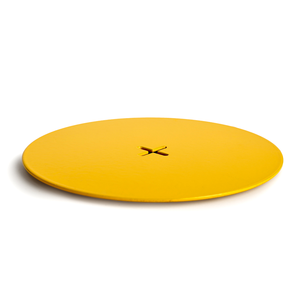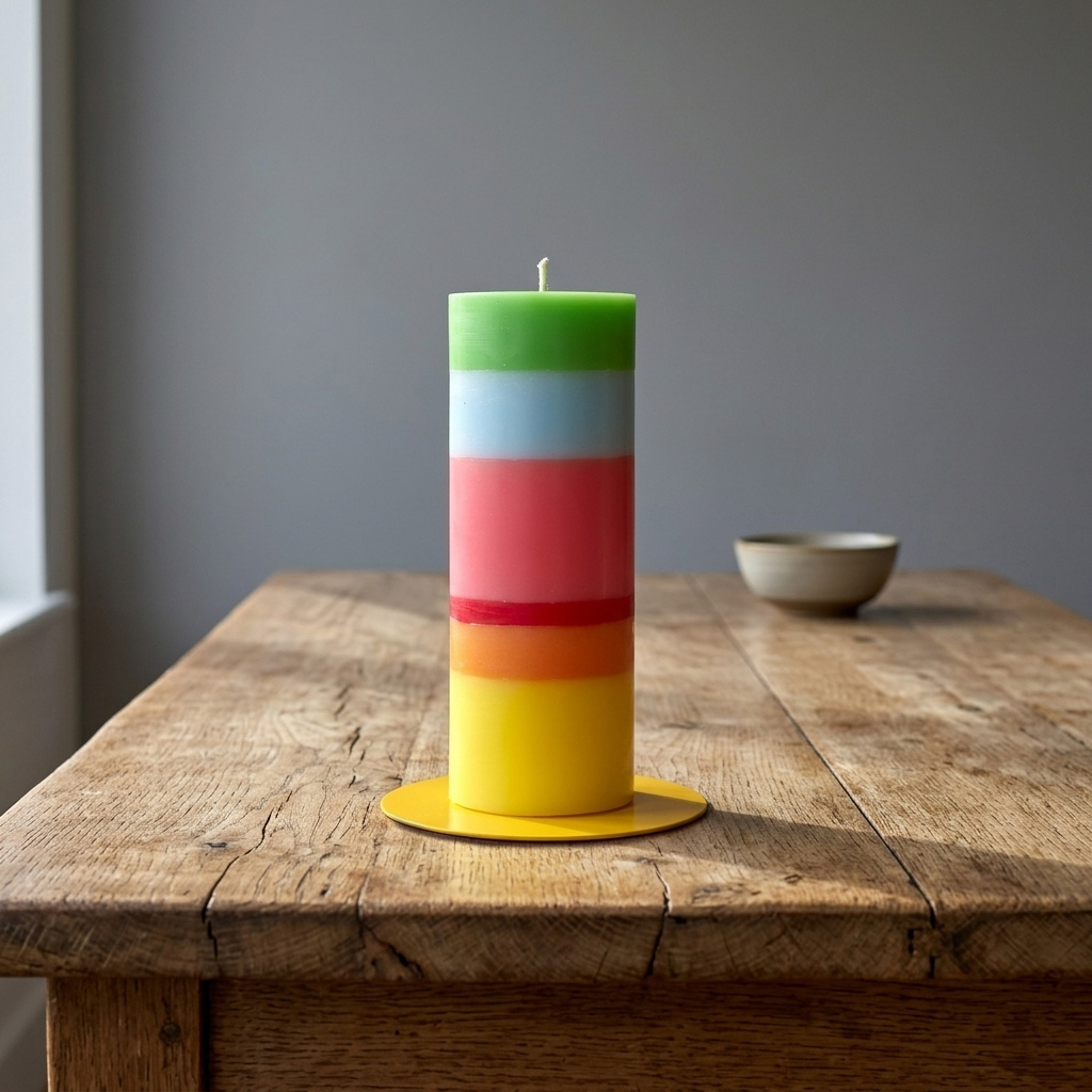 Ein auf seine wesentliche Funktion reduziertes Produkt, das ist der Kerzenhalter POP. Für Stumpenkerzen gibt es Big POP – eine kreisrunde Scheibe aus farbig gepulvertem Stahl. Fast unsichtbar wird Big POP mit Kerzen derselben Farbe, erfreulich poppig hingegen, in Kombination zu andersfarbigen Kerzen. Je nachdem, wonach euch gerade der Sinn steht.