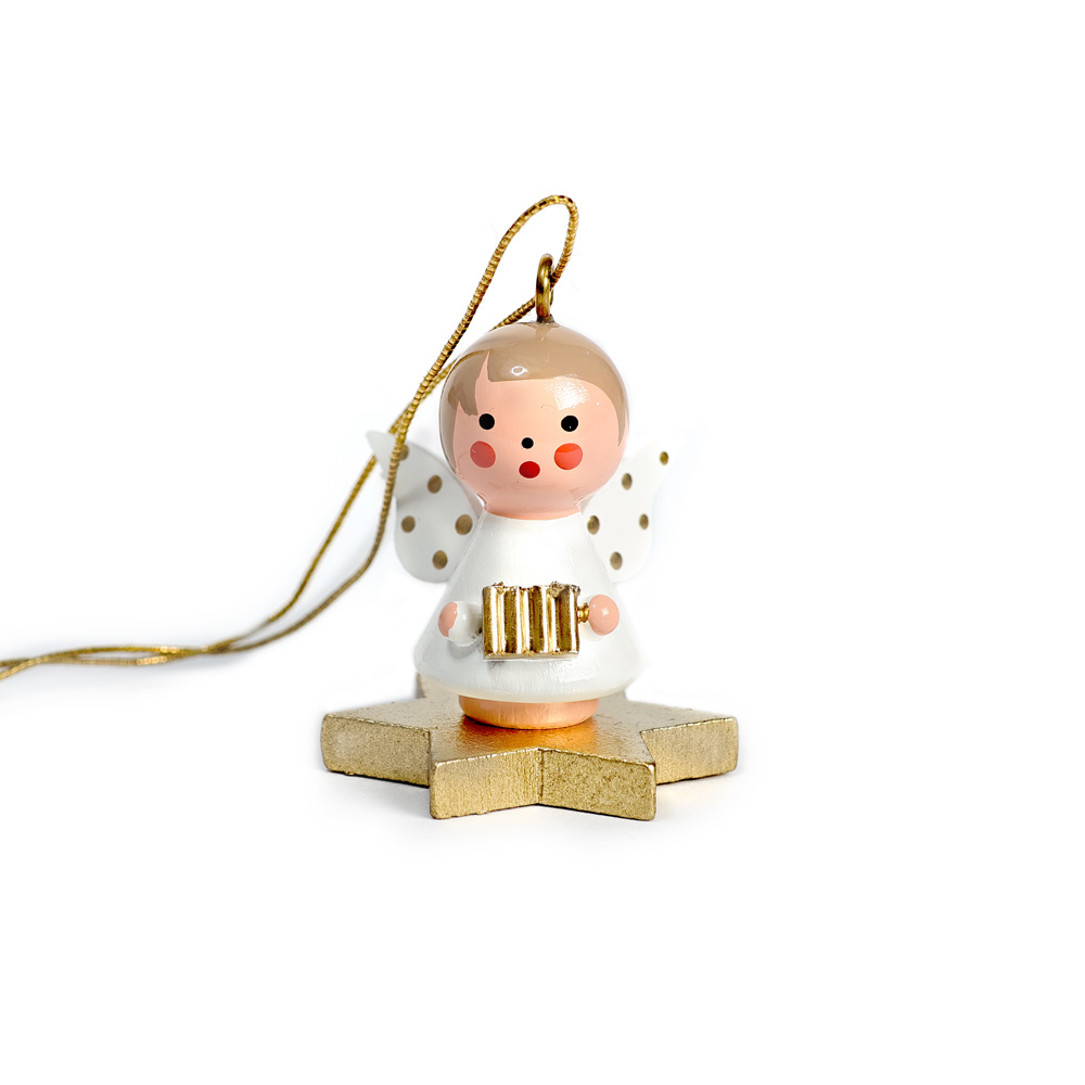 Kleiner Engel Weiß auf Stern mit Zieharmonika