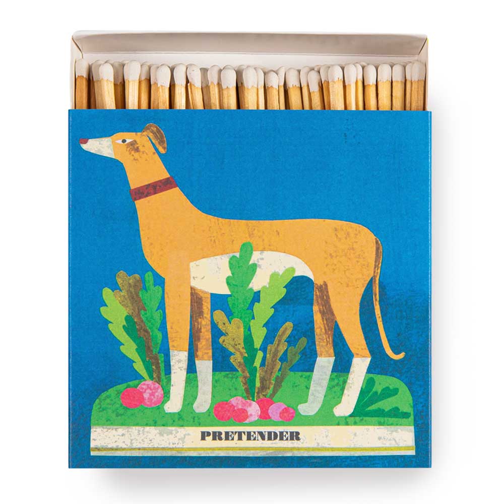 Auf den Luxury Matches ist sehr viel Platz: überdimensioniert große Schachteln mit langen Streichölzern. Im Letterpress-Farbdruck werden die Illustrationen aus England auf die Schachteln gebracht. Wie schön!