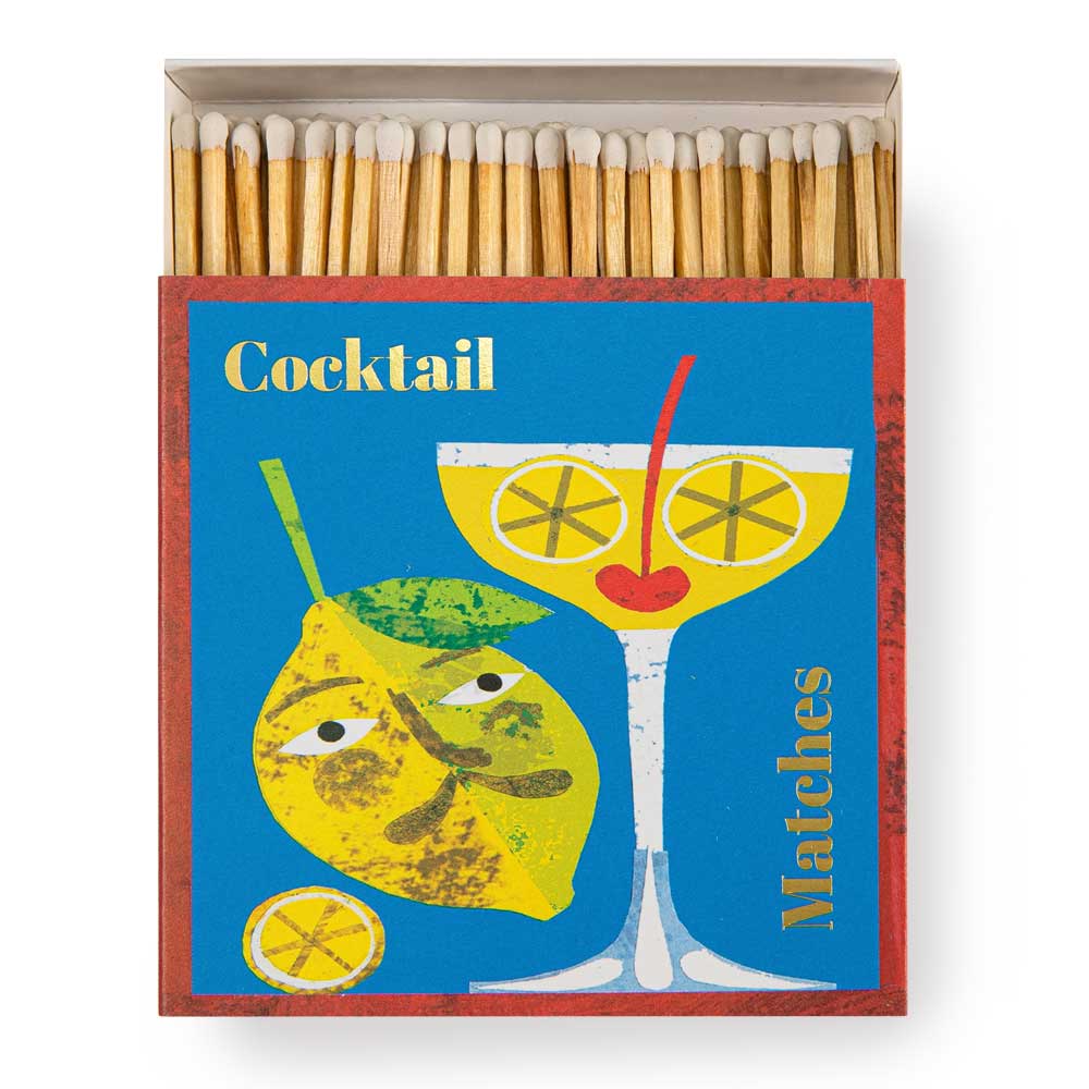 Auf den Luxury Matches ist sehr viel Platz: überdimensioniert große Schachteln mit langen Streichölzern. Im Letterpress-Farbdruck werden die Illustrationen aus England auf die Schachteln gebracht. Wie schön!