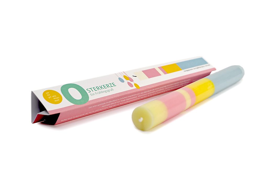 Eine Kerze in sanften Pastelltönen für die Osterzeit. Genau richtig, damit ihr euch auf den Frühling einstimmen könnt.