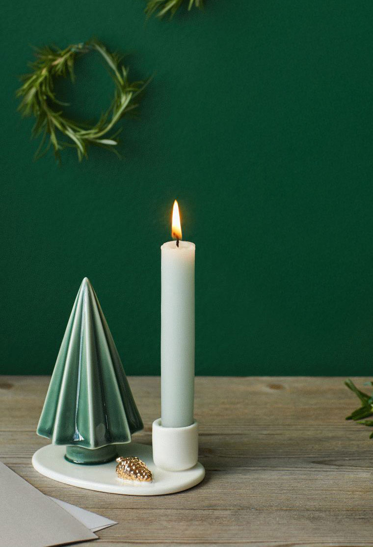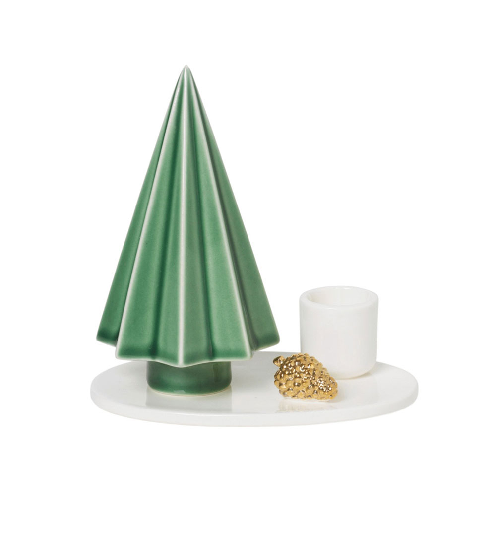 Passend für unsere Stabkerzen haben wir diesen zeitlos schönen, skandinavischen Kerzenhalter aus hochwertigem Porzellan gefunden. Versehen ist er mit einem grünen Baum und goldenen Zapfen. Es wird, wo auch immer ihr ihn hinstellt, gemütlich.