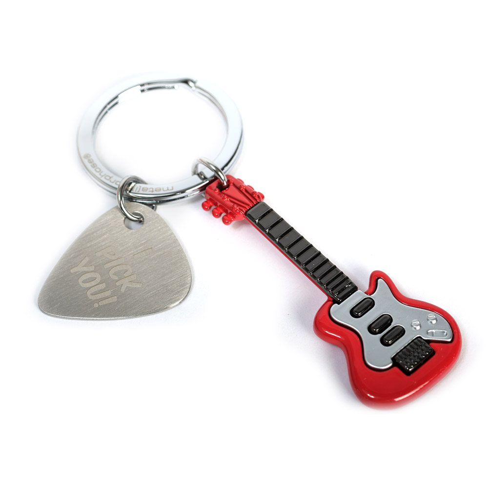 Motiv: Schlüsselring mit Gitarre und Plektron