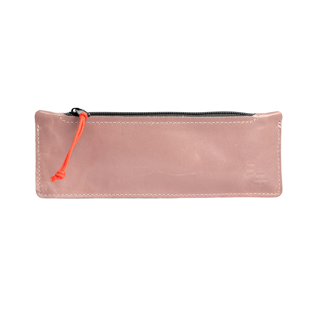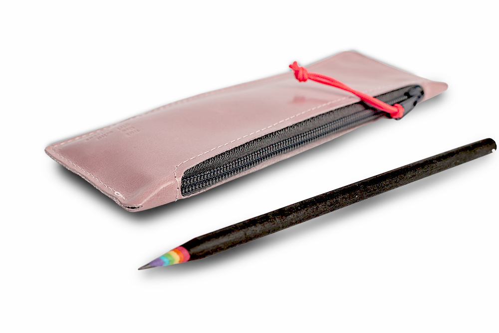 Flach und elegant ist das Stiftemäppchen aus weichem, leicht glänzenden Leder. Es hat die perfekte Größe für die wichtigsten 3 Stifte, den Füller und das Radiergummi.