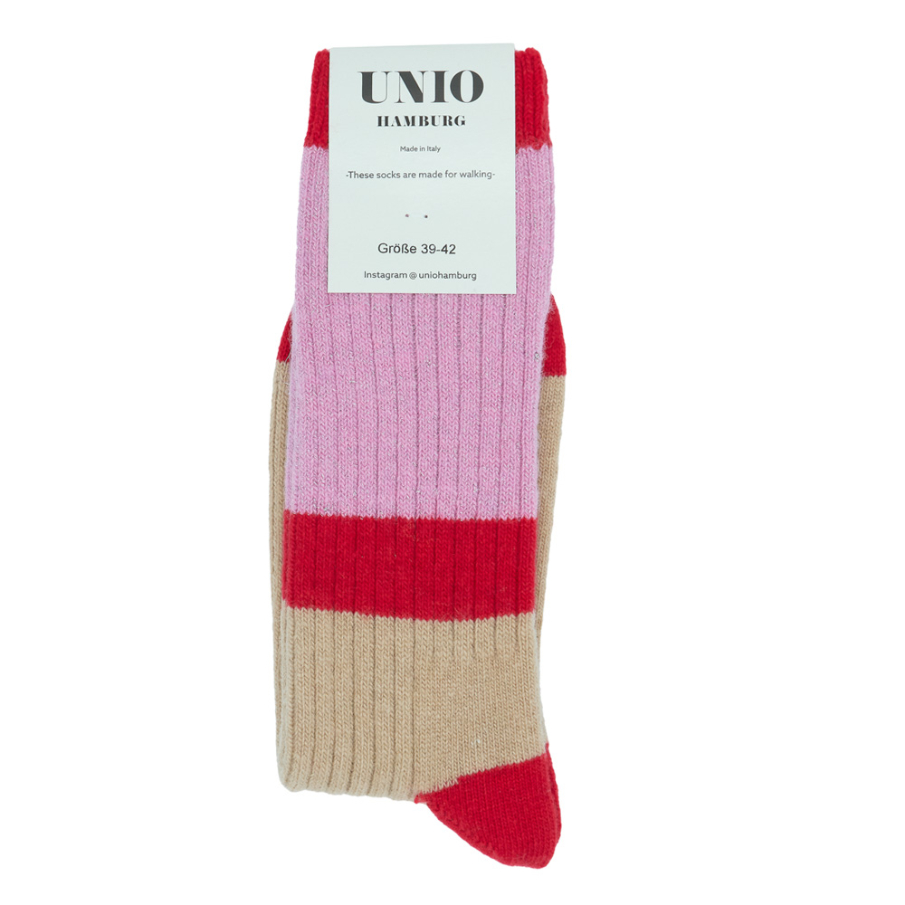 Hier treffen tolle, aufeinander abgestimmte Farben auf einen hochwertigen Materialmix mit weichem Kaschmiranteil, der euren Füßen zweifelsohne gefallen wird. UNIO aus Hamburg macht keine halben Sachen: Die Socken werden nachhaltig und fair nach eigenen Entwürfen für euch in Italien gefertigt.