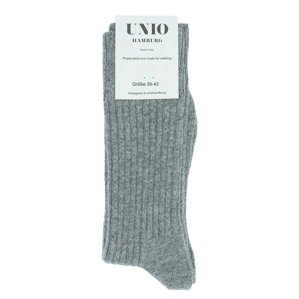 Kniestrumpfträgerinnen aufgepasst. Das hochwertigen Materialmix mit weichem Kaschmiranteil, wird euren Füßen zweifelsohne gefallen wird. Die langen Socken sehen nicht nur super aus, sie wärmen auch unter weiten Hosenbeinen. UNIO aus Hamburg macht keine halben Sachen: Die Socken werden nachhaltig und fair nach eigenen Entwürfen für euch in Italien gefertigt.